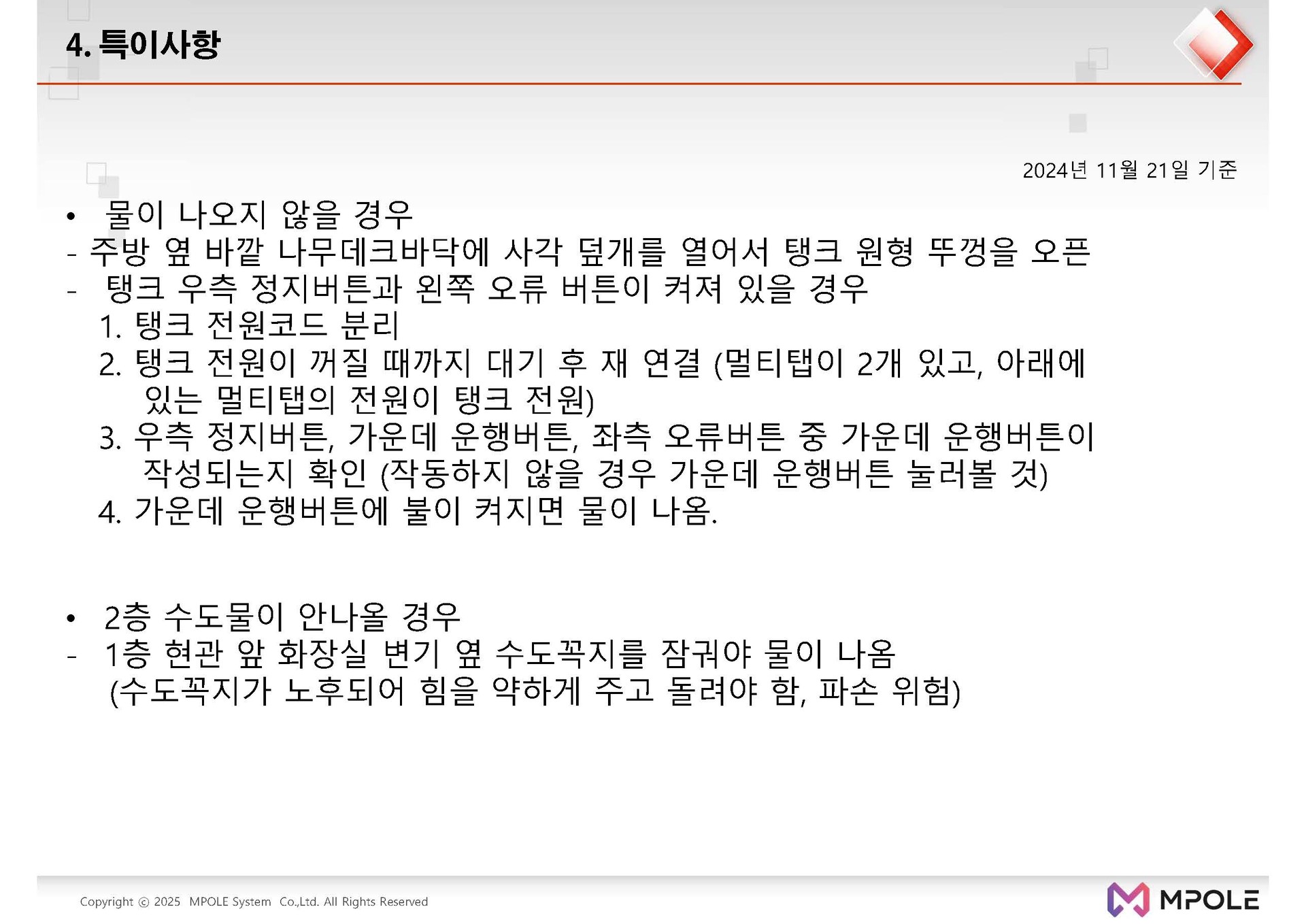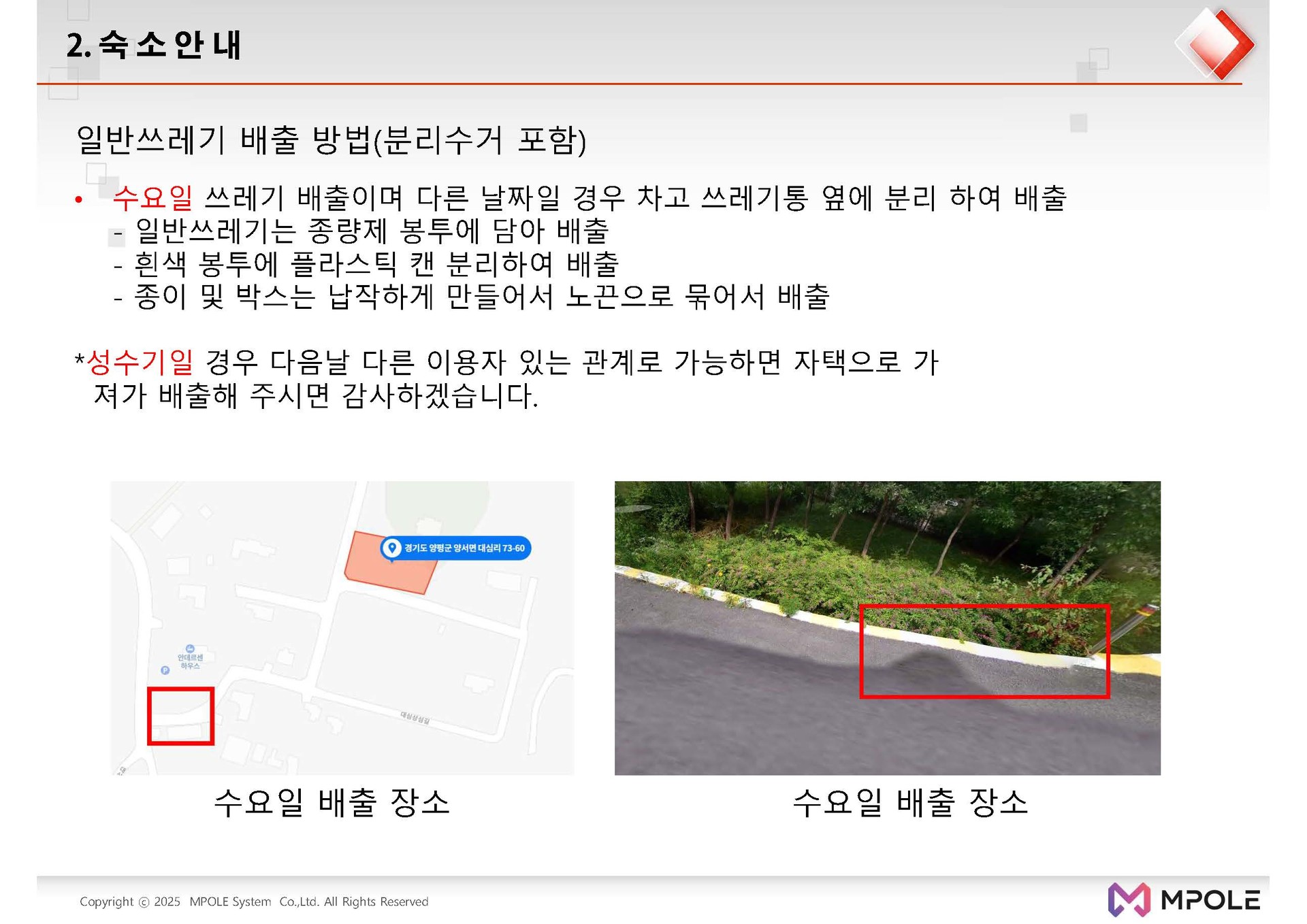 양평 숙소 이용 안내